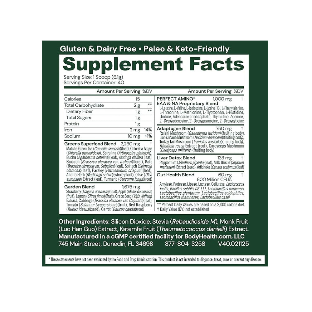 Perfect Greens Formula combines 8 separate extract blends into a single high- potency drink for your total nourishment and optimal performance.