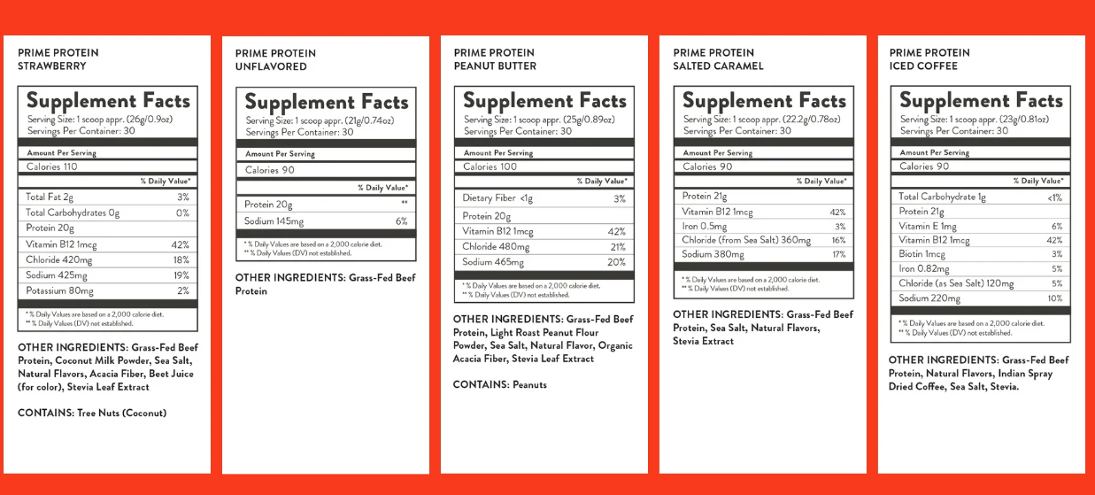 Every serving of Prime Protein contains 4 oz of grass-fed beef. That’s 21g of protein and absolutely no sugars. We use stevia to sweeten our flavored blends but Unflavored Prime is stevia-free.