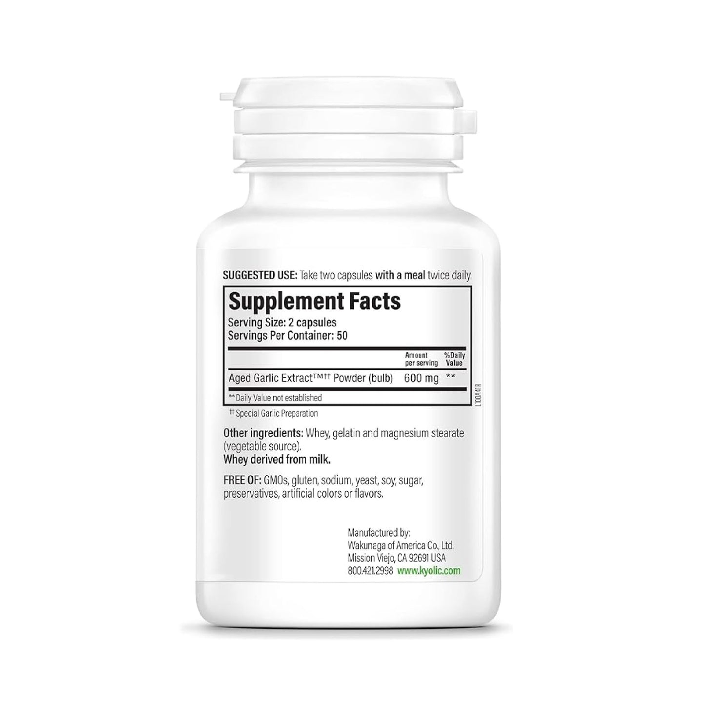 • KYOLIC® Aged Garlic Extract™ begins with 100% organically grown garlic from California. It is then aged to perfection in a unique extraction process to eliminate odor and create beneficial compounds found only in Kyolic.• This formula supports and strengthens your cardiovascular system by maintaining circulatory function and promoting overall heart health.*