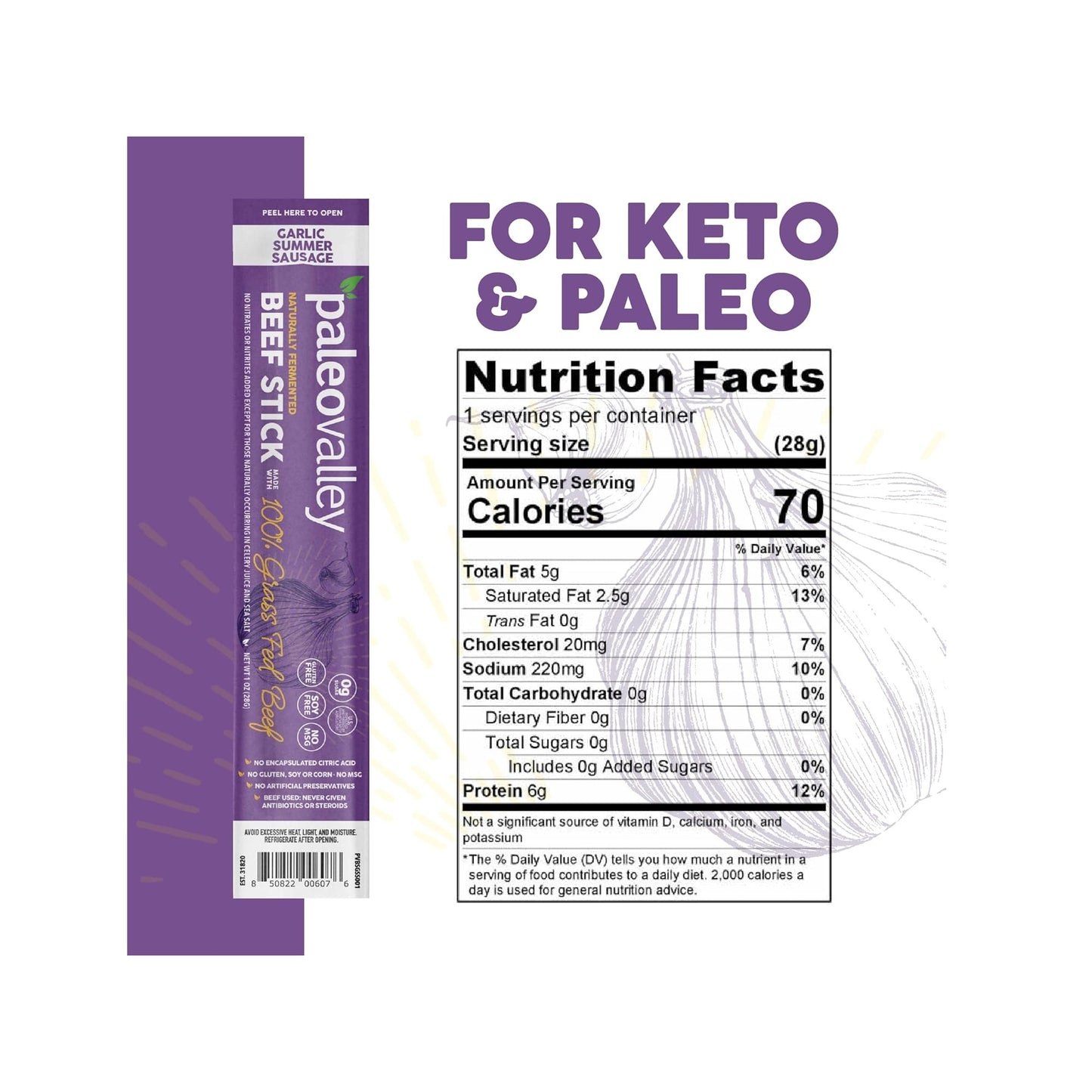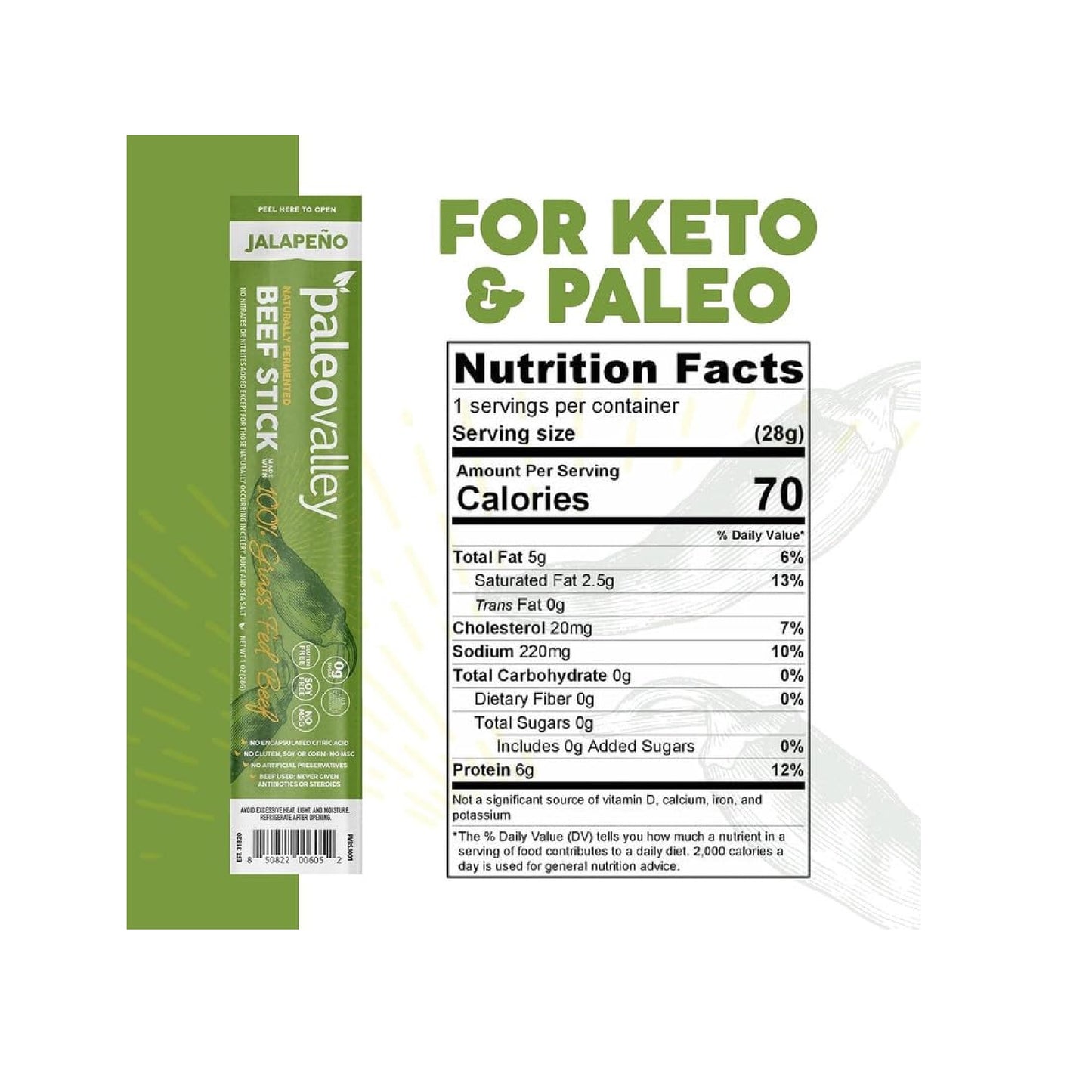 Paleovalley 100% Grass Fed Beef Sticks are the only beef sticks in the USA made from 100% grass fed/grass finished beef and organic spices that are naturally fermented.