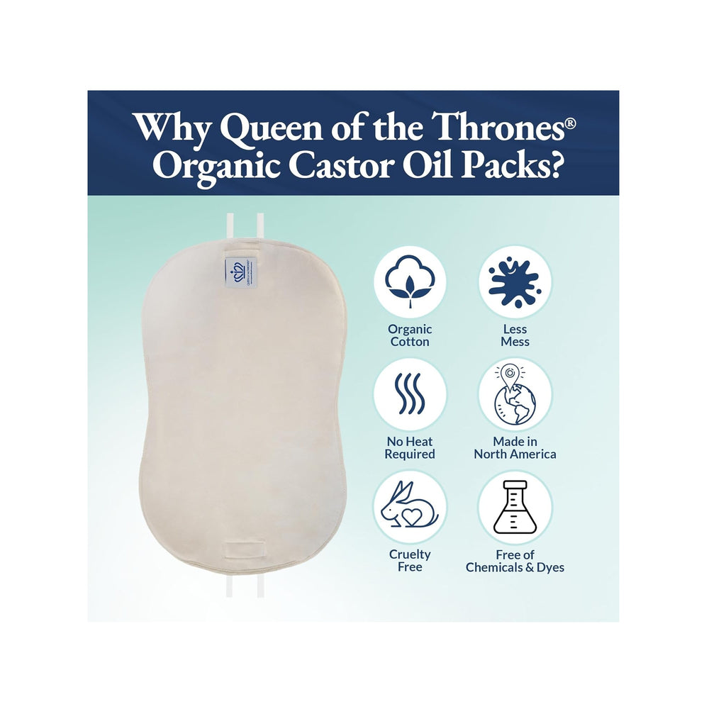 Queen of the Thrones® original heatless, less-mess, reusable Castor Oil Pack for the mid-lower back.