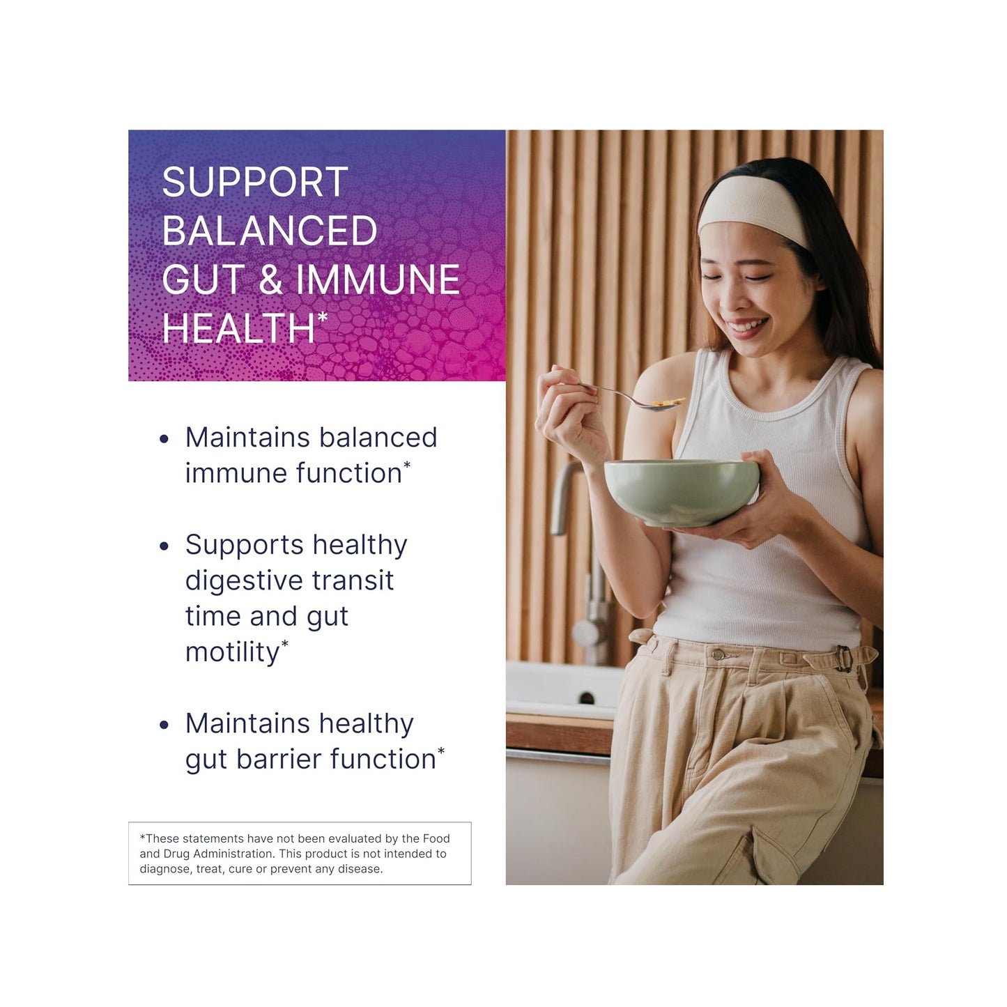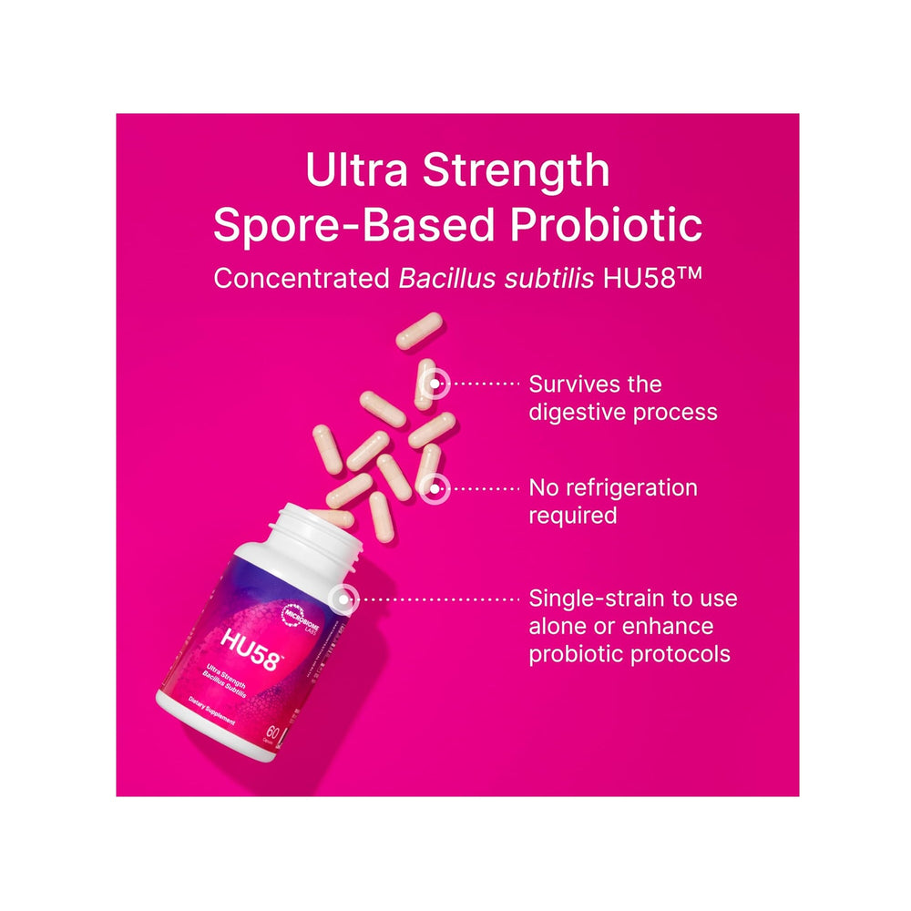 Single-strain probiotic with a concentrated dose of Bacillus subtilis HU58, formulated to support healthy immune function and maintain a healthy balance of intestinal microflora.*