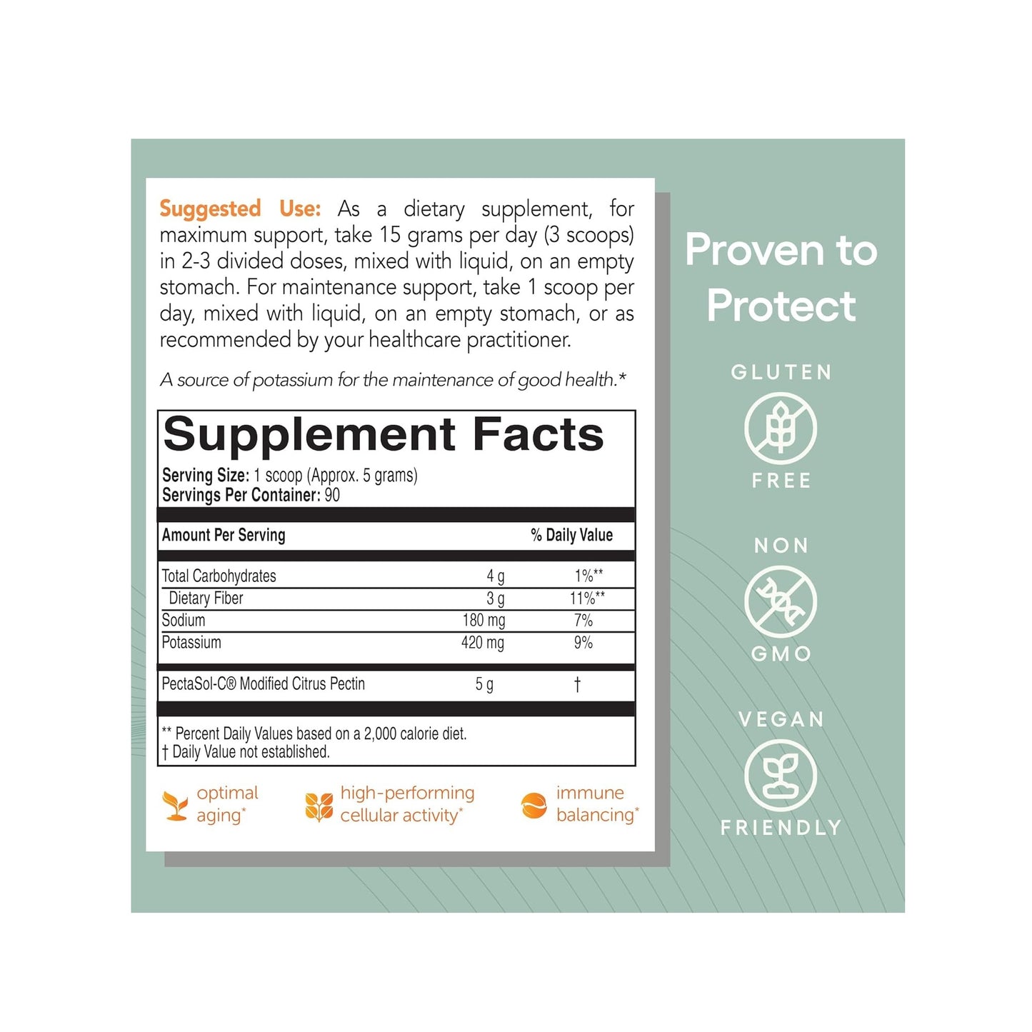 PectaSol-C® Professional is a natural inhibitor of galectin-3. Research shows that maintaining healthy galectin-3 levels supports healthy aging, cellular function, cardiovascular health and normal immune response.*