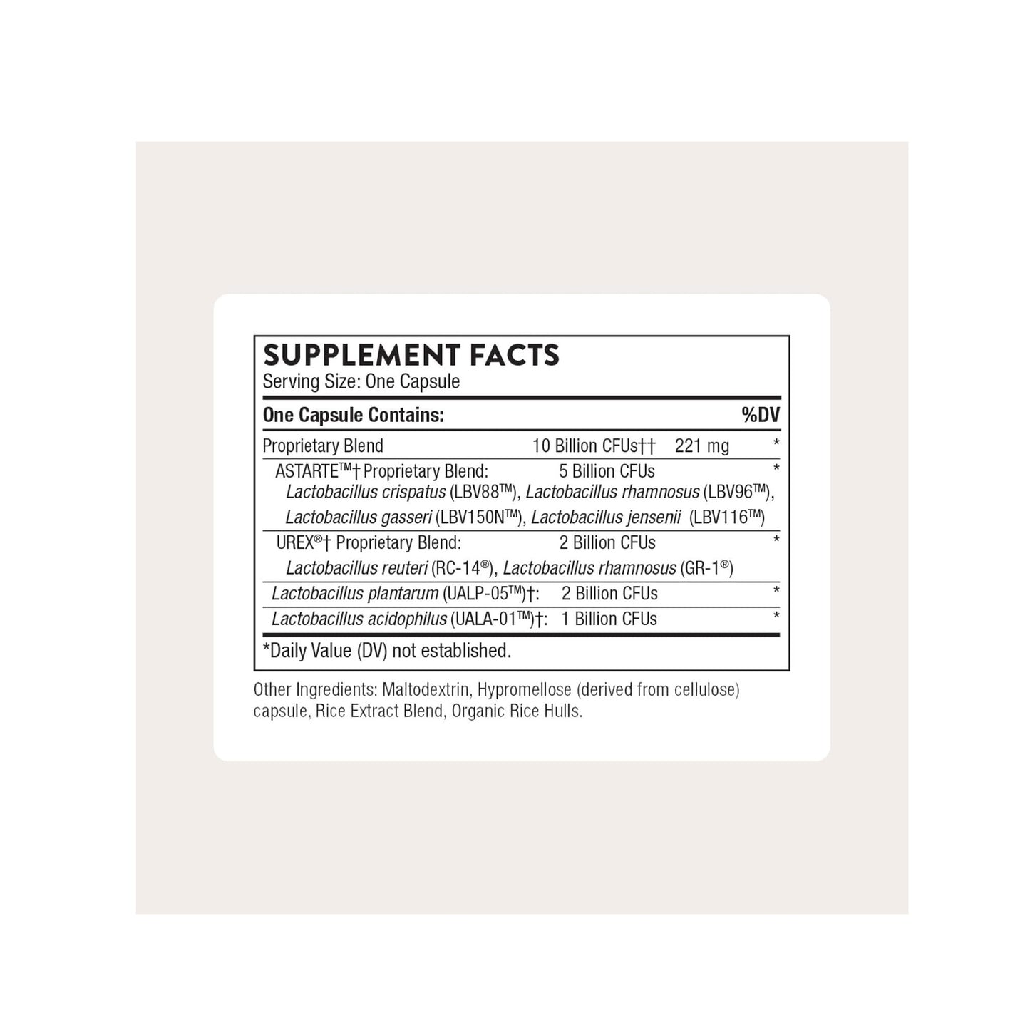 The formula is designed specifically to support the unique daily needs of women. Women’s Daily Probiotic provides advanced support for the microbiome that goes beyond gut health, with probiotic strains found specifically in a healthy urinary and vaginal tract.* Women’s Daily Probiotic helps establish and maintain a balanced microbial population in the vaginal and urinary tracts to promote immune function, balance, and comfort in a woman’s delicate tissues.*