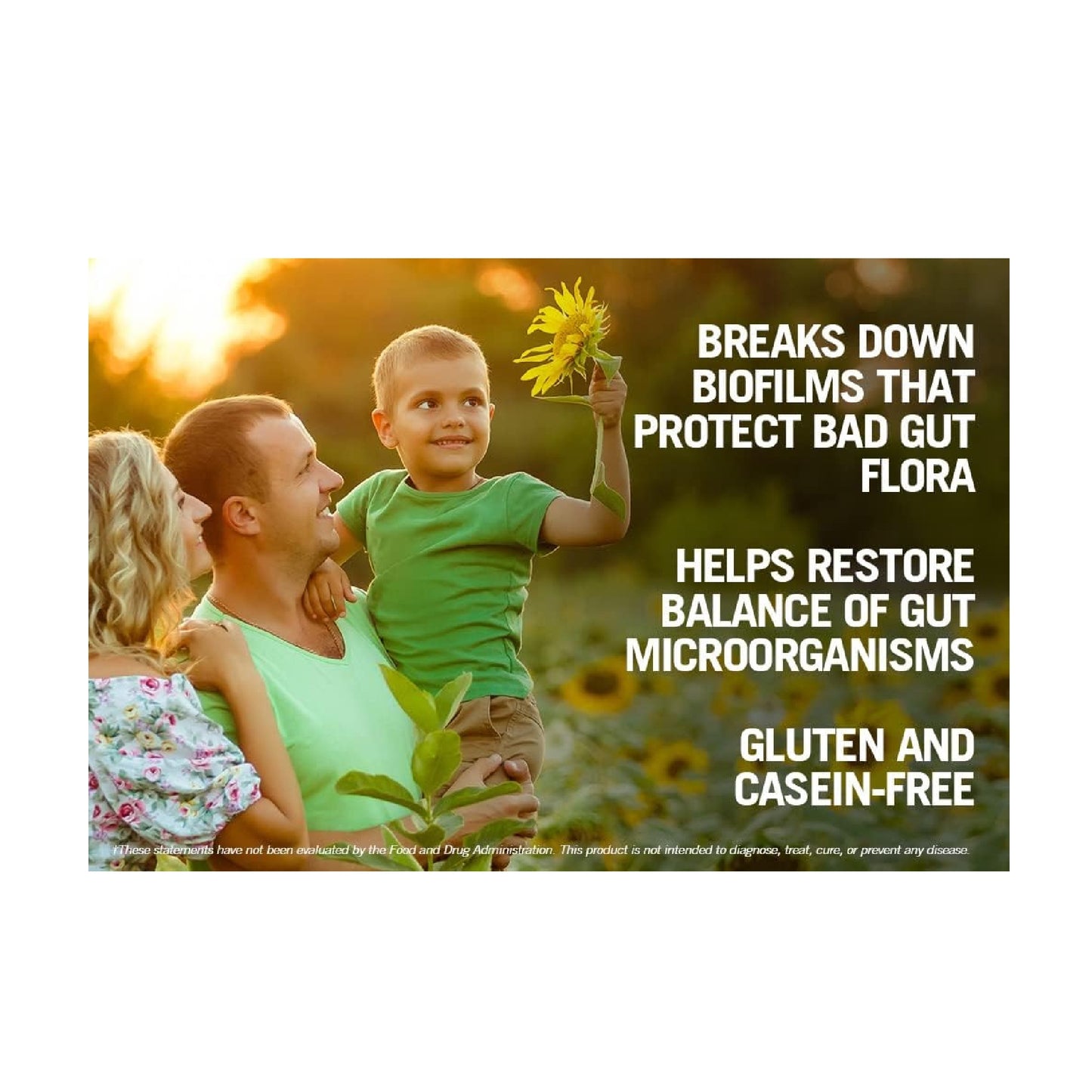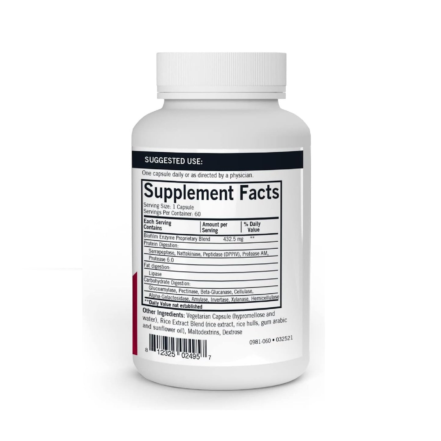 Scientists have discovered that the composition of most biofilms consists of sugar molecules or polysaccharides, minerals (such as calcium, iron and magnesium), DNA and fibrin. Biofilm Defense® degrades these components.* Because it lacks any significant amount of protease, which can irritate a sensitive GI tract, Biofilm Defense® can be taken on an empty stomach