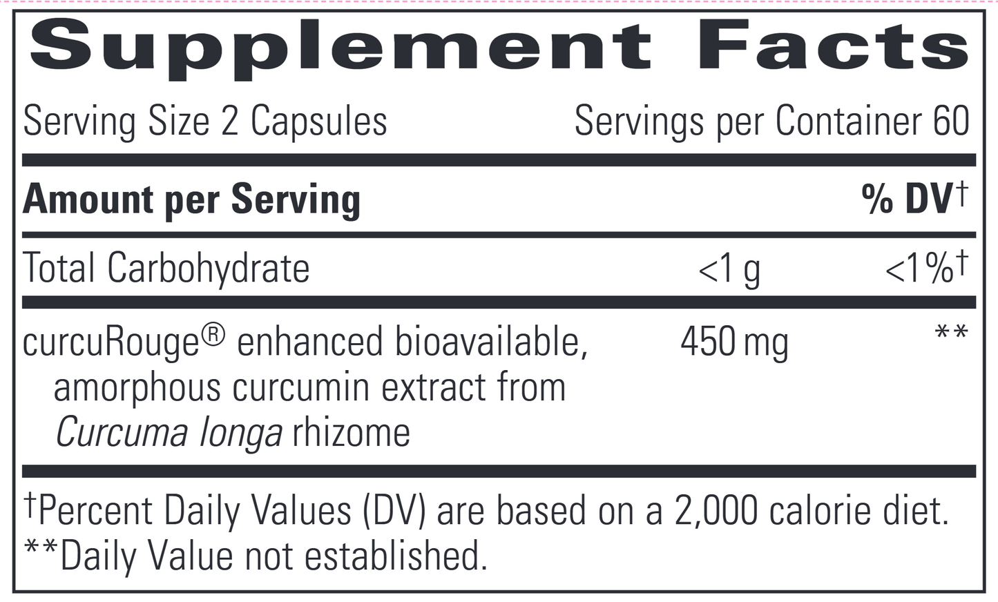 Advanced absorption curcumin formulated with curcuRouge®, an amorphous solid dispersion containing curcumin extract. Integrative Therapeutics Curalieve provides advanced absorption curcumin due to its amorphous structure and excipient profile, which contributes to enhanced dispersibility and bioavailability. Curcumin has been studied and evaluated for its role in supporting antioxidant pathways and its effects on the body.*1,2 Curalieve’s key ingredient is curcuRouge®, an amorp