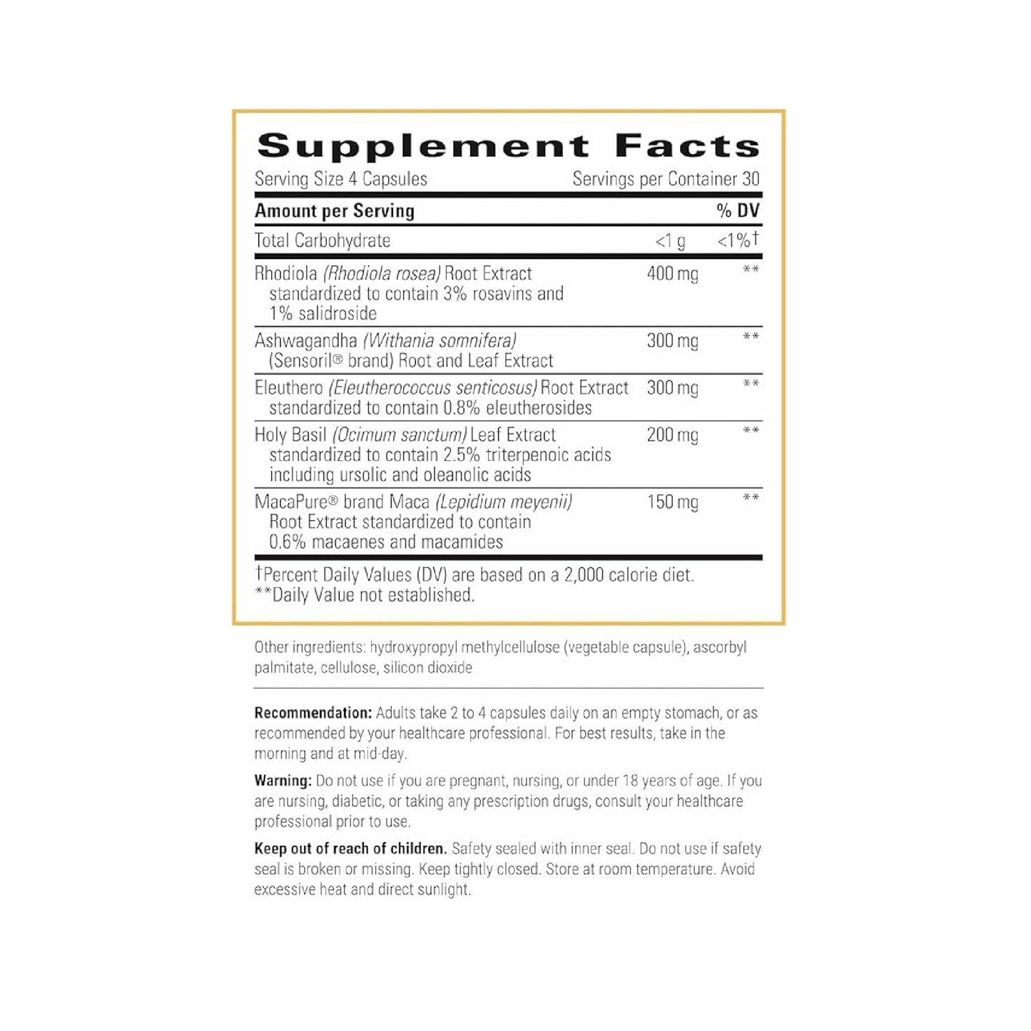HPA Adapt™ combines five powerful adaptogenic herbs, including Rhodiola, Ashwagandha, Eleuthero, Maca, and Holy Basil, to maintain a healthy stress response thus helping the body better respond to both mental and physical stressors. The ingredients support stress hormone balance via the hypothalamic-pituitary-adrenal (HPA) axis. The hypothalamic-pituitary-adrenal axis, or HPA axis, is the central part of the stress response system. It involves a complex set of interactions and feedback loops between the hypothalamus, the pituitary, and the adrenal glands. The HPA axis also plays a role in the regulation of other systems of the body, including the gastrointestinal, neurological, and immune systems. Therefore, supporting optimal HPA axis function is important to maintaining overall health and wellness.