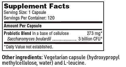 Saccharomyces boulardii is a nonpathogenic, transient yeast long used to support normal bowel transit time.* It is a hardy, acid-resistant, temperature tolerant microorganism that is not affected by antibacterial agents. S. boulardii is genetically and functionally distinct from brewer’s yeast (S. cerevisiae) and different from pathogenic Candida species.