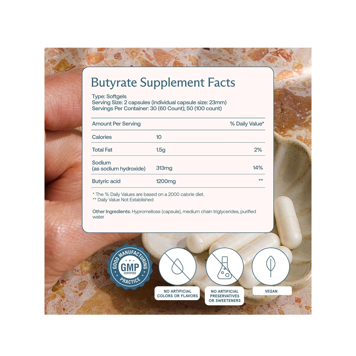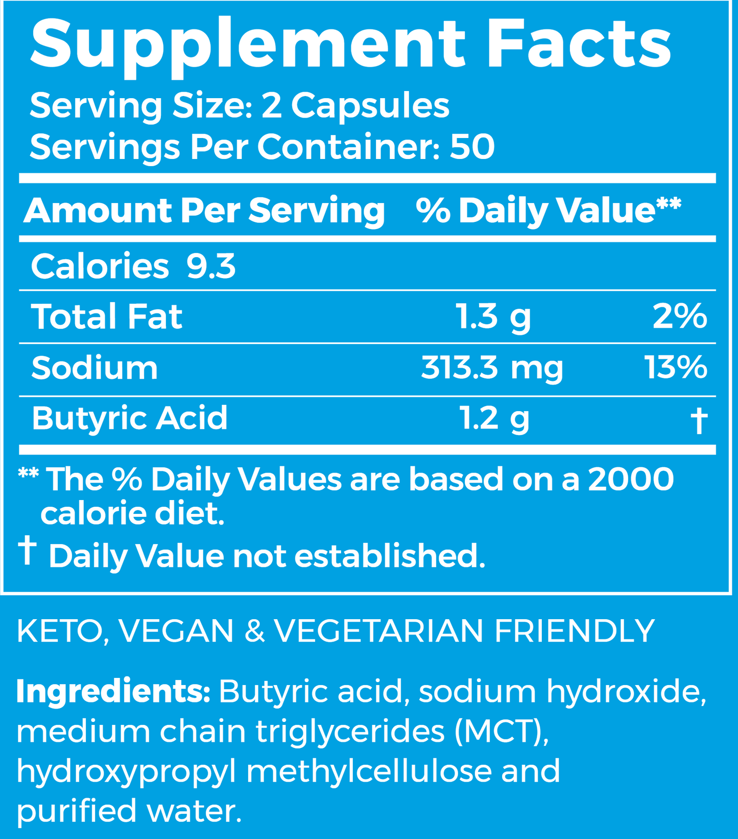 Butyrate supports the gut lining to promote healthy digestion and may also support appetite control by increasing the production of leptin.* Na is added to buffer the natural pH of Butyric acid.