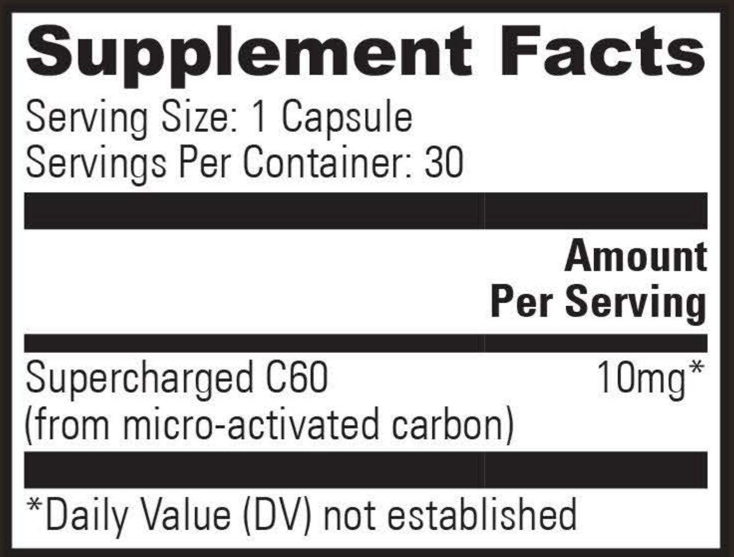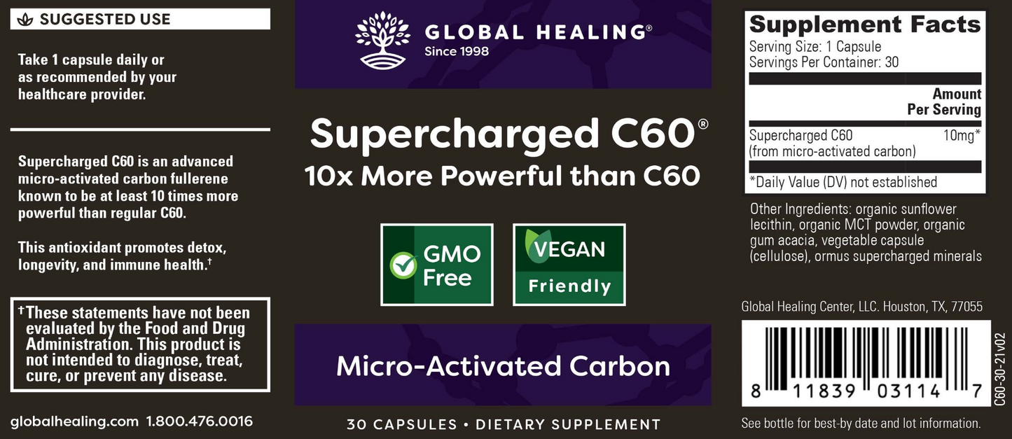 Supercharged C60 is an advanced form of micro-activated, multi-layered, and highly organized Carbon 60. C60 is a potent antioxidant, supports detoxification, enhances the body’s defense against the harmful effects of aging, and promotes a healthy immune system. This advanced formulation is up to 1000x stronger than standard forms of C60.