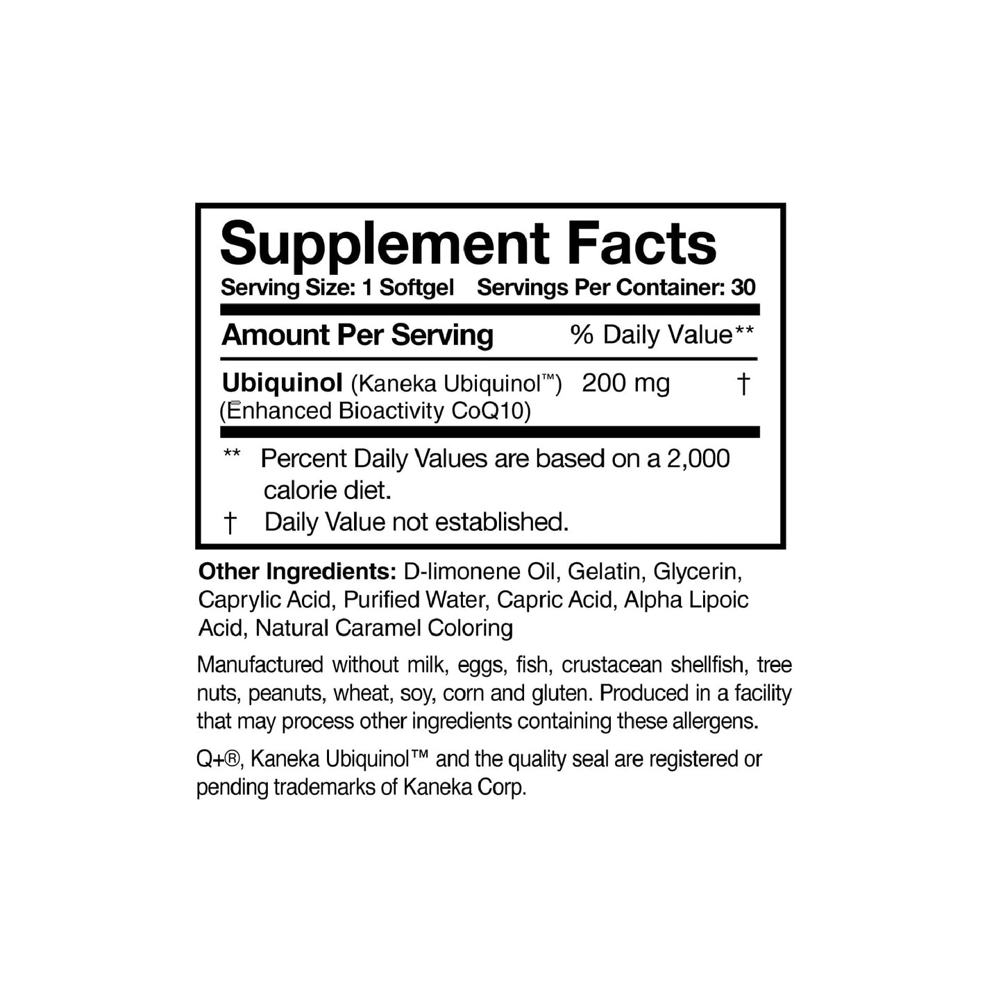 Ubiquinol Super 200™ offers the patient 200 mg of the reduced form of CoQ10 for its primary antioxidant role. As people age, CoQ10 becomes more difficult to absorb. This reduced form of CoQ10 improves absorption, while offering an affordable option for those seeking the benefits of CoQ10 in the ubiquinol form.