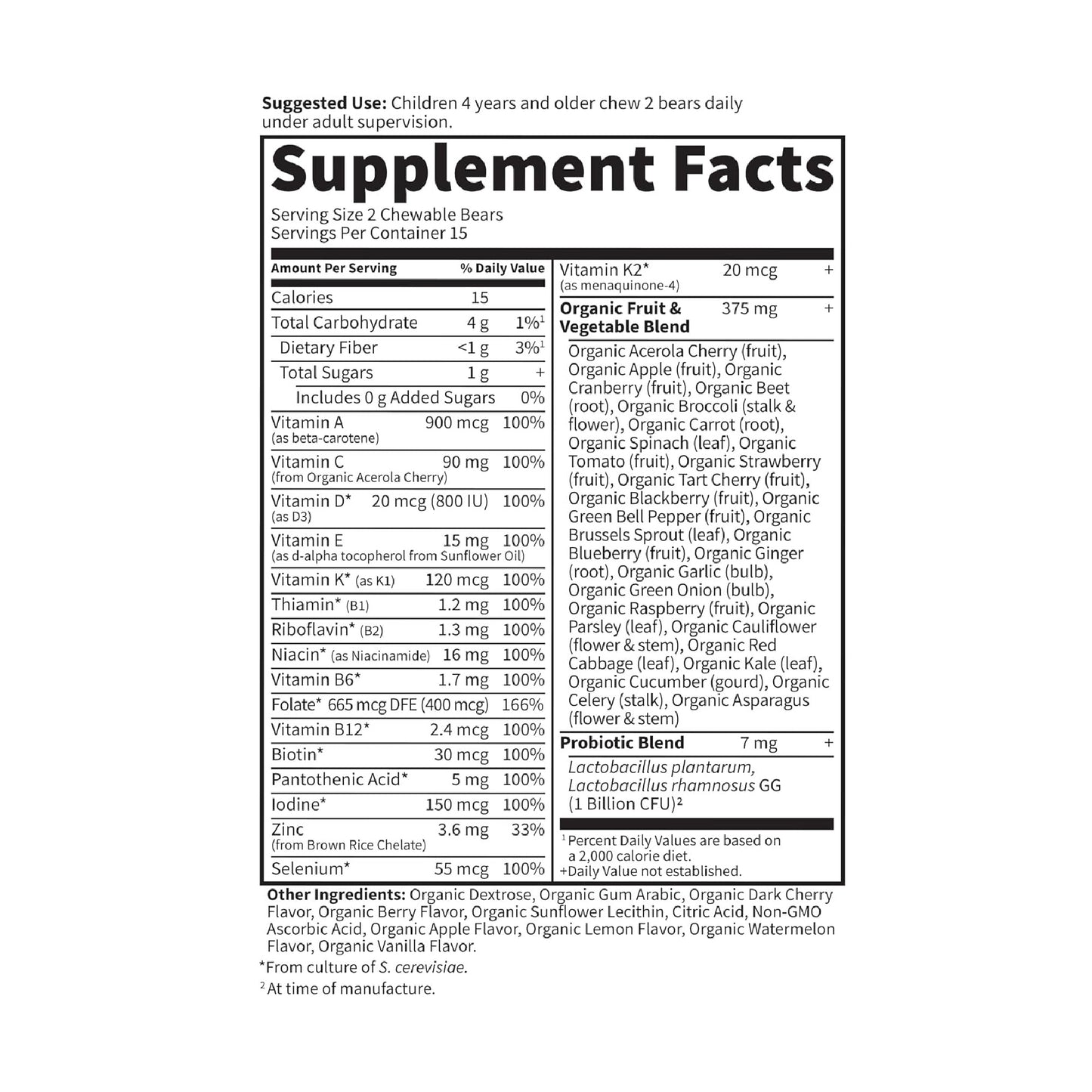 Vitamin Code Kids is a great-tasting chewable whole food, Non-GMO Project Verified multivitamin to support your child’s healthy development.* Made with Vitamin Code vitamins and minerals in a base of 24 family-farmed fruits and vegetables, Vitamin Code Kids supports your active, growing child.* Clean whole food ingredients are gently blended, never heated, into a base of fruits and vegetables—and there are no artificial flavors, sweeteners or additives.