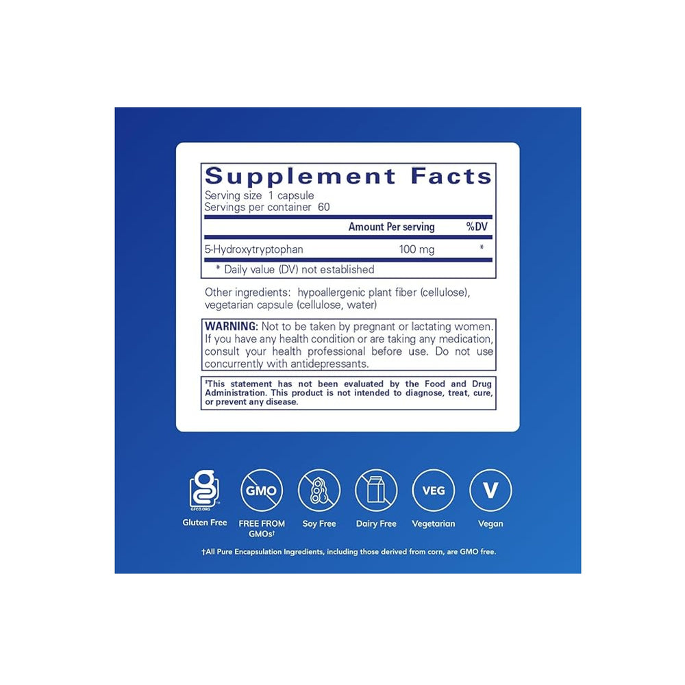 5-Hydroxytryptophan (5-HTP) is an intermediate in the natural synthesis of the essential amino acid, tryptophan, to serotonin. The enzyme tryptophan hydroxylase adds a hydroxyl group (OH) to tryptophan, forming the 5-HTP intermediate. In the body, it converts to serotonin with the removal of a carboxyl group (COOH) by a second enzyme. Serotonin is an important neurotransmitter involved in the regulation of endocrine and brain activity responsible for emotion, appetite and sleep/wake cycles. In clinical studies, administration of 5-HTP supported serotonin production. The 5-HTP supplied in this supplement is derived from the Griffonia simplicifolia plant.*