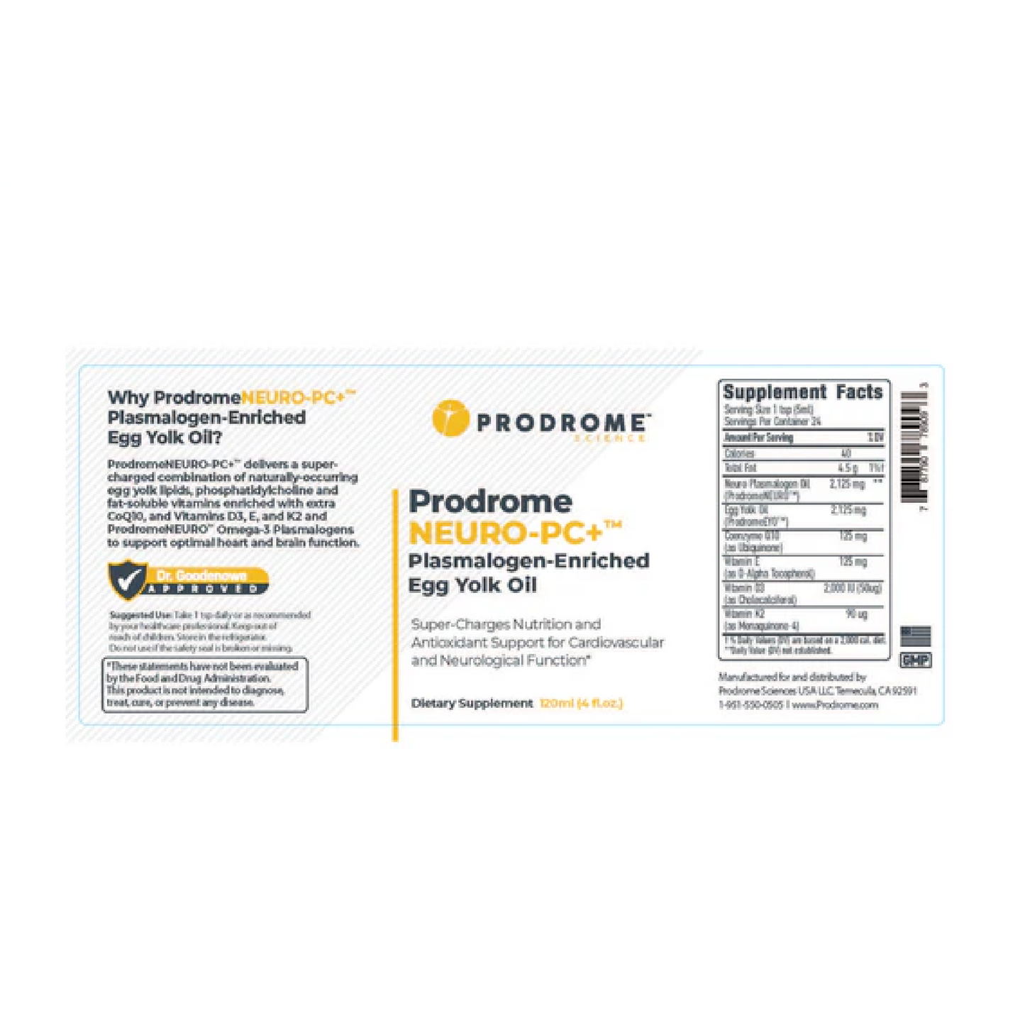 ProdromeNEURO-PC+ delivers a supercharged combination of naturally occurring egg yolk lipids, phosphatidylcholine, and fat-soluble vitamins enriched with extra CoQ10, Vitamins D3, E, and K2, and ProdromeNEURO Omega-3 Plasmalogens to support optimal heart and brain function.