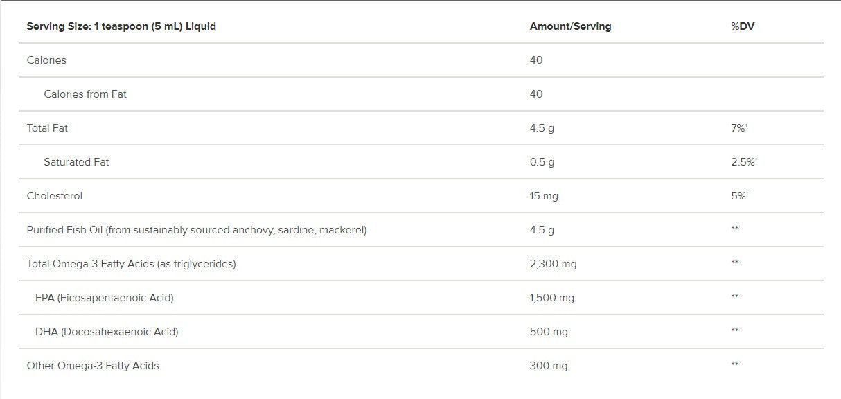 Pure Omega Liquid provides a total of 2300 mg omega-3s for those wanting the benefits of omega-3s in the convenience of a liquid.