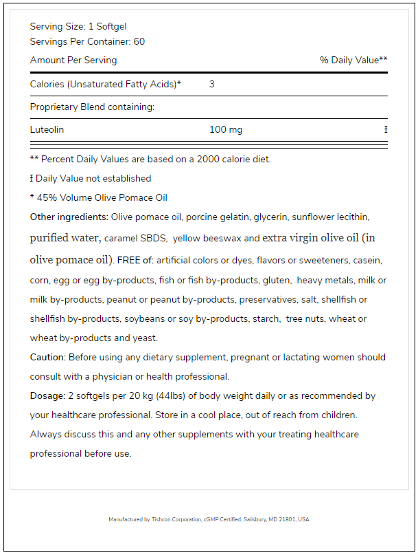 The unique, patented, formulation of pure luteolin with olive pomace oil may help*: