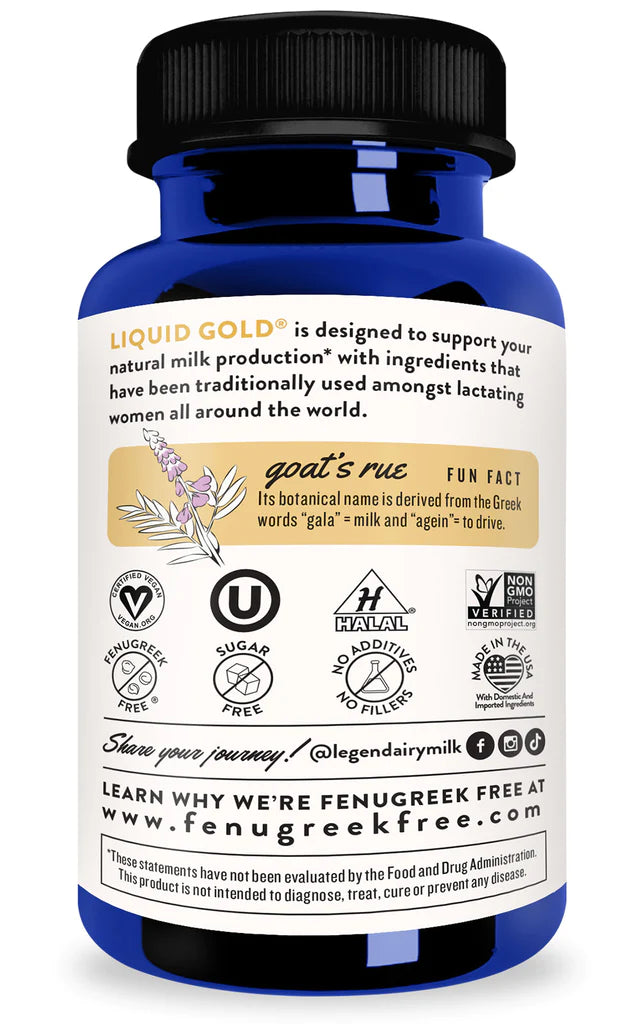 Liquid Gold® contains a blend of powerful organic ingredients designed to optimize breast milk production. Goat's rue has a long-standing reputation for supporting a healthy milk supply in dairy animals and humans while milk thistle and shatavari are also traditionally used for added lactation support.