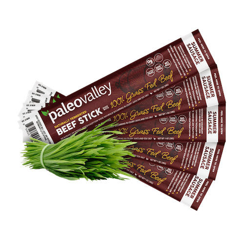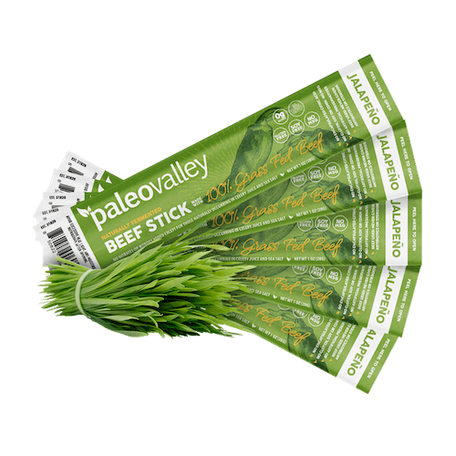Paleovalley 100% Grass Fed Beef Sticks are the only beef sticks in the USA made from 100% grass fed/grass finished beef and organic spices that are naturally fermented.