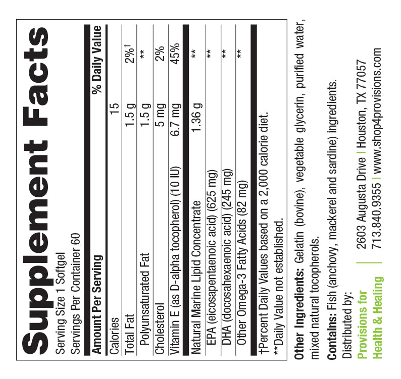EPA and DHA from fish oil promote cardiovascular health by supporting optimal triglyceride and cholesterol levels and reducing platelet aggregation.* Fish oil has also been shown to promote optimal joint function and overall brain and nervous system function.*