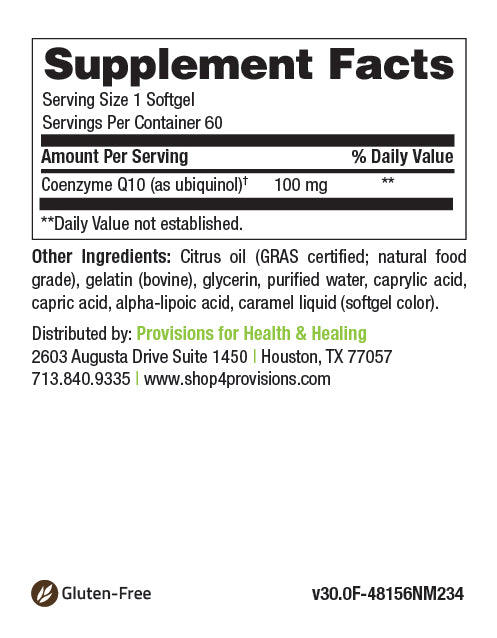 Ubiquinol Pro 100 is crystal-free and contains the reduced form of CoQ10, ubiquinol. Ubiquinol is the active form of CoQ10 and may be better absorbed than ubiquinone in some individuals. Ubiquinol Pro 100 contains refreshing, natural food grade citrus oil for improved solubility and enhanced absorption in the intestine.