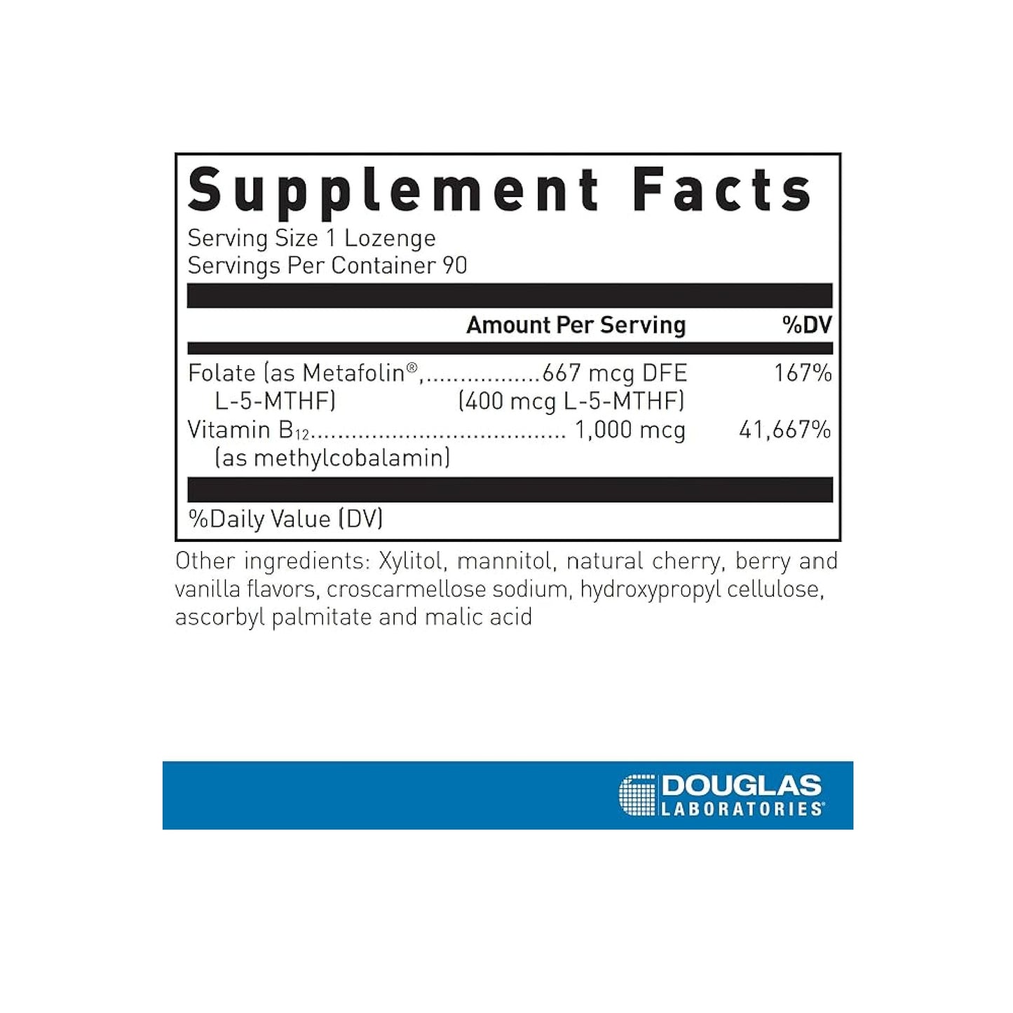 Methyl B12 Plus by Douglas Laboratories® provides Metafolin® L-methylfolate and vitamin B12 methylcobalamin in a great-tasting tablet that rapidly dissolves in the mouth. Methylfolate and methylcobalamin are the predominant forms of B vitamins commonly found in cells that do not require additional conversion in the body. Methyl B12 Plus dissolvable tablets are sweetened naturally with Xylitol and flavored with natural black cherry and vanilla. Methyl B12 Plus dissolvable tablets may be a useful dietary supplement for individuals who wish to increase their intake of vitamin B12 and folate.