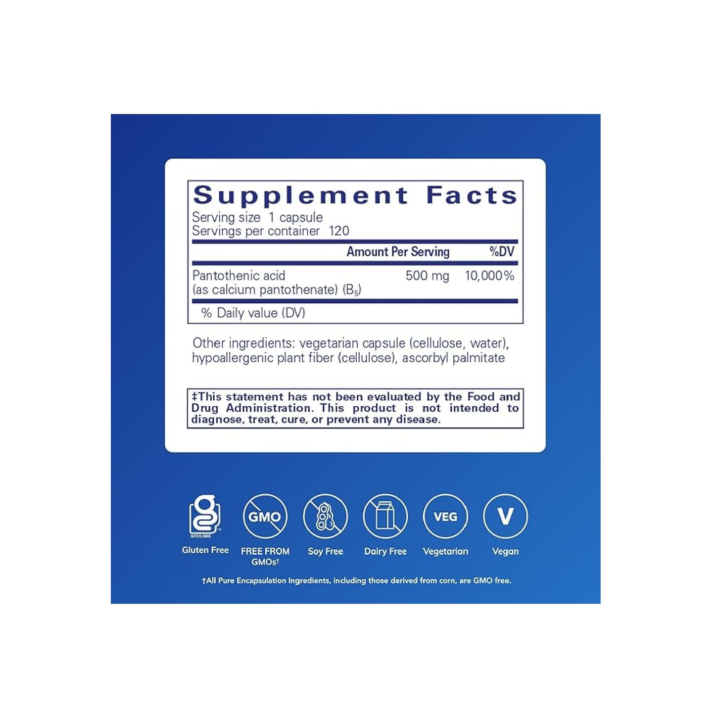 Pantothenic acid (B6) is a precursor of coenzyme A (CoA), an important cofactor and acyl group carrier in cells. One of the main functions for CoA is the formation of acetyl-CoA, vital for cellular respiration and the metabolism of carbohydrates and fatty acids through the Krebs cycle. Distribution studies indicate that tissues with the highest retention of pantothenic acid are the kidneys, pituitary gland, heart, muscle, liver and adrenal glands. Additionally, pantothenic acid is required for the synthesis of fatty acids and membrane phospholipids, the amino acids leucine, arginine and methionine, and isoprenoid derivatives, including steroid hormones, vitamin A and vitamin D. Pantothenic acid supports cellular energy production, adrenal and cardiovascular health, and synthesis of vitamins, amino acids, fatty acids, and steroid hormones. Additionally, pantothenic acid is required for the synthesis of fatty acids and membrane phospholipids, the amino acids leucine, arginine and methionine, and isoprenoid derivatives, including cholesterol, steroid hormones, vitamin A and vitamin D.