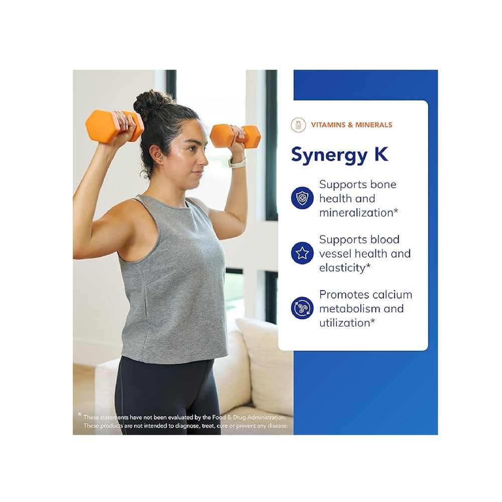 A unique blend of vitamins K1, K2Ā and D for healthy calcium utilization to maintain healthy bones and blood vessels.