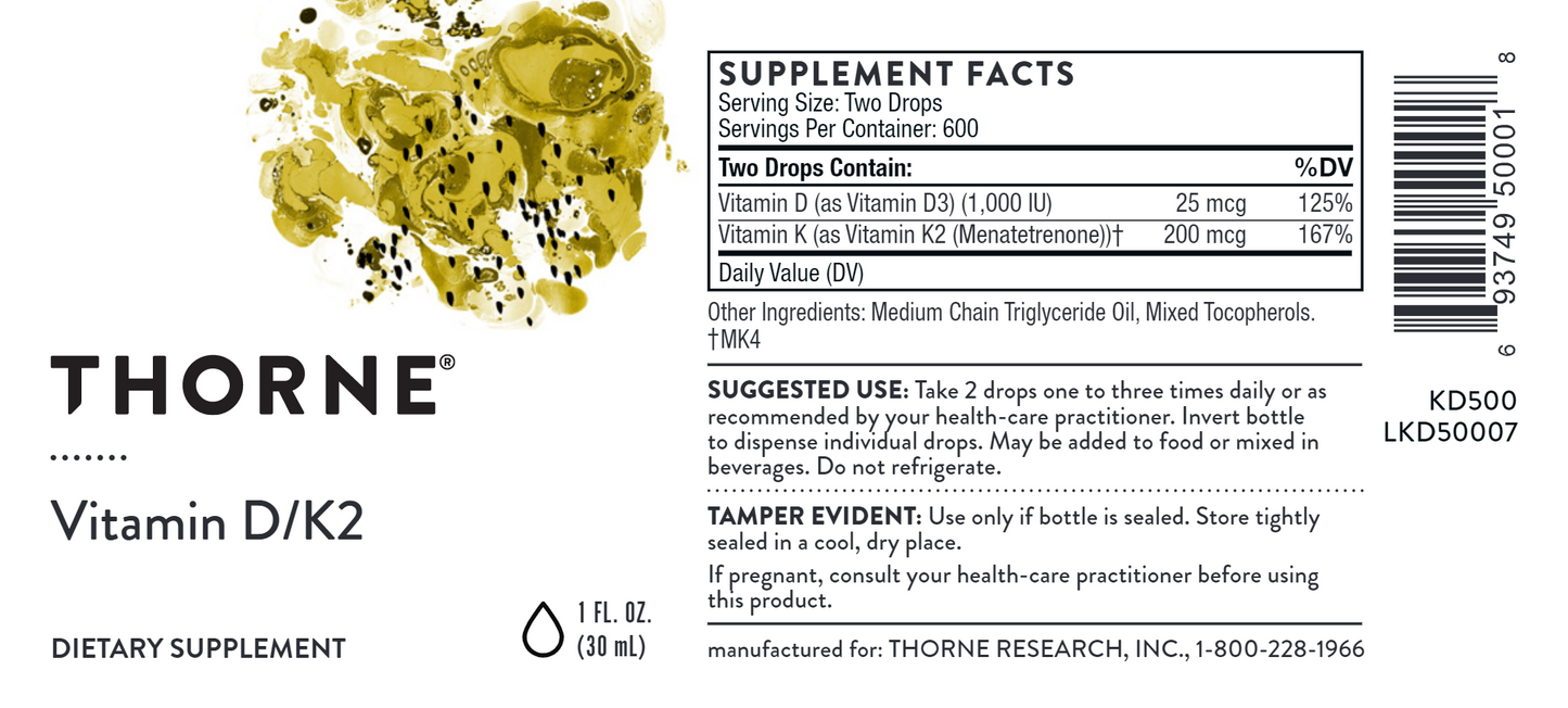 Vitamin D/K2 Liquid 1 oz (Thorne)